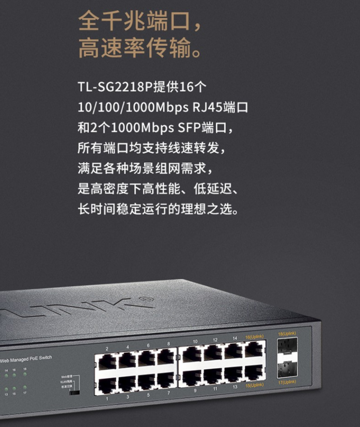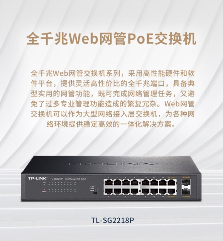 以太網(wǎng)交換機(jī)普聯(lián)/TP-LINK網(wǎng)管型云管理POE供電交換機(jī) 16口千兆 企業(yè)級TL-SG2218P/臺